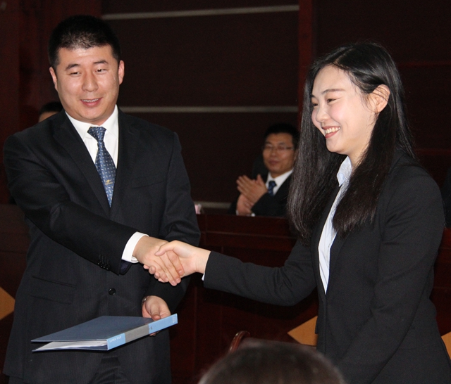 活動圍繞著新員工入職典禮展開,2016年新入職的13名員工依次上臺做自我介紹。周芋宏代表新員工上臺發(fā)言,她表示,會盡快融入海投這個集體,不斷地提高自己各方面的能力,為公司發(fā)展奉獻出自己的一份力。