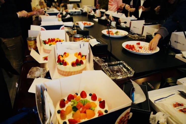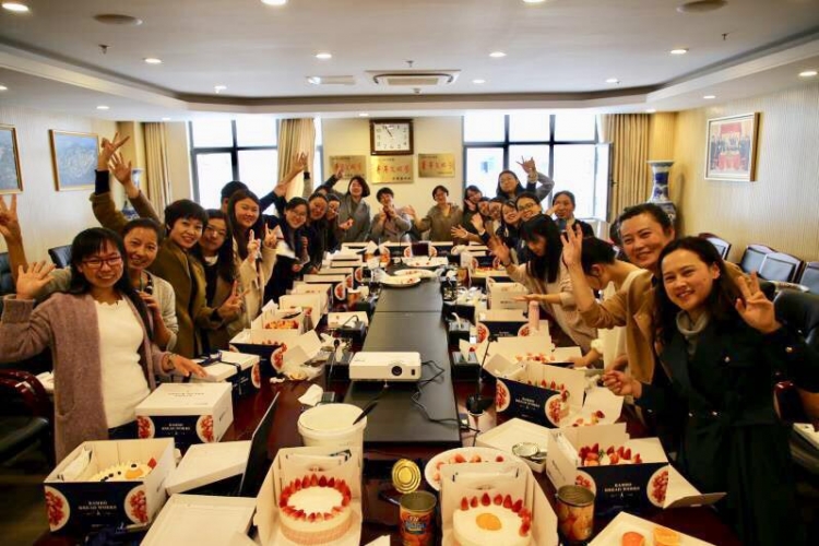 “啊呀,你做的咋個(gè)這么好看,我也來學(xué)學(xué)。”“還有黃桃么?給我也來點(diǎn)!”“寸寸做的可好看了?!薄肮阖?cái)務(wù)的做法就是把水果堆滿” ……3月9日上午,盡管室外有些許早春的寒意,公司大會(huì)議室里卻歡聲笑語不斷,暖意融融。會(huì)議室小小的長桌前,圍攏了本部的女同胞們,大家在親手為自己DIY一個(gè)蛋糕,歡度自己的“蝴蝶節(jié)”。