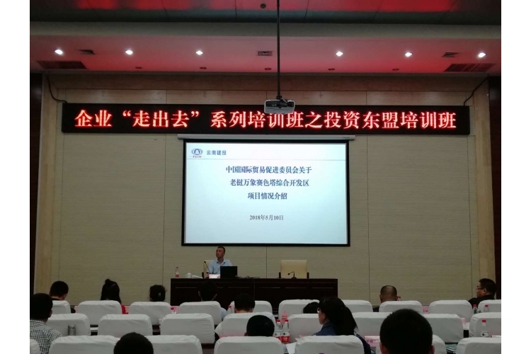 5月9日-10日,由中國貿(mào)易促進會主辦、中國貿(mào)促會(中國國際商會)培訓(xùn)中心和山東省貿(mào)促會承辦的“企業(yè)‘走出去’系列培訓(xùn)之投資東盟國家培訓(xùn)班”在山東省德州市舉辦。廣東、江蘇、安徽、河北等20多個貿(mào)促機構(gòu)負(fù)責(zé)人、全國各地70多位企業(yè)代表和德州本地百余家企業(yè)代表參加培訓(xùn)。公司所屬的老中聯(lián)合投資有限公司收到特別邀請,派出一名人員作為講師之一,赴山東德州向眾多企業(yè)家詳細(xì)介紹并推薦了老撾萬象賽色塔綜合開發(fā)區(qū)。