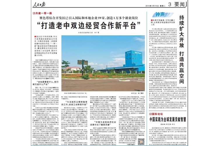 4月16日出版的《人民日報》第三版要聞版頭條以《賽色塔綜合開發(fā)區(qū)已引入國際和本地企業(yè)59家,創(chuàng)造1萬多個就業(yè)崗位——“打造老中雙邊經貿合作新平臺”》為題,對集團投資控股、海投公司負責實施的老撾萬象賽色塔綜合開發(fā)區(qū)的投資建設現狀進行深度報道。