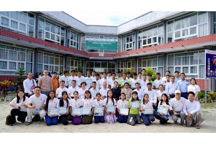 2019年11月8日,緬甸皎漂青少年英語培訓項目在皎漂青少年培訓中心舉行結(jié)業(yè)儀式。中信緬甸副總經(jīng)理馬傳福、緬甸民盟議員吳尼尼、緬甸民盟教育網(wǎng)絡(luò)主席昂萊內(nèi)、緬甸東方語言中心董事長曾圓香、云南海投相關(guān)負責人、培訓項目管委會成員和培訓班學員等近百人出席儀式。