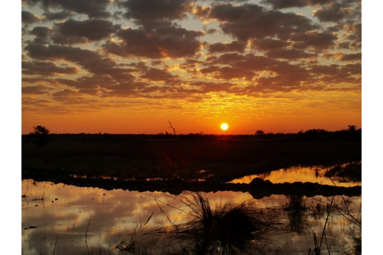 5月份以后雨季開始,當?shù)谝宦暲茁曧懫穑厣峡蔹S的草木就開始舒展身枝,干枯的土地終于享受盛宴,慢慢合上了那被太陽烤裂的傷口。小草發(fā)芽了,將旱季所遭受的憋屈從泥土里蹦發(fā)出來,卯足勁往上漲,翠嫩青綠的草色映著波光粼粼的田野與天上藍天白云交相輝映。