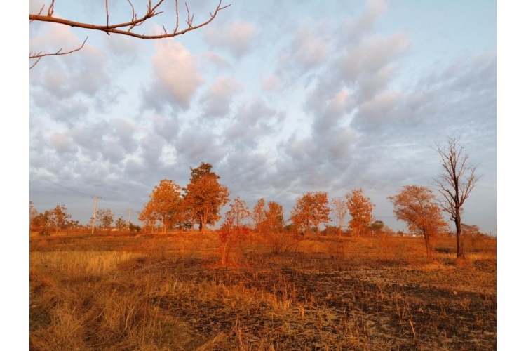 開門節(jié)前后,雨水基本結束,在中國的這個時候,到處開啟賞秋模式,桂花香,菊花黃,楓葉正紅,各種花草樹木在冬季來臨之前競相將自己最絢麗的色彩展露出來。然而,原生態(tài)的老撾沒有那種層林盡染的盛宴,變化的只有天上的云彩。旱季來了,云彩開始慢慢減少,云朵在頭頂堆積如棉花糖般可以伸手摘下一朵的日子也在漸行漸遠。不變的是太陽總是那么火熱,不知疲倦的掛在天空,吮吸著地上萬物在雨季積攢的水份,直至將他們焦烤到最后一滴汁液才肯罷休。