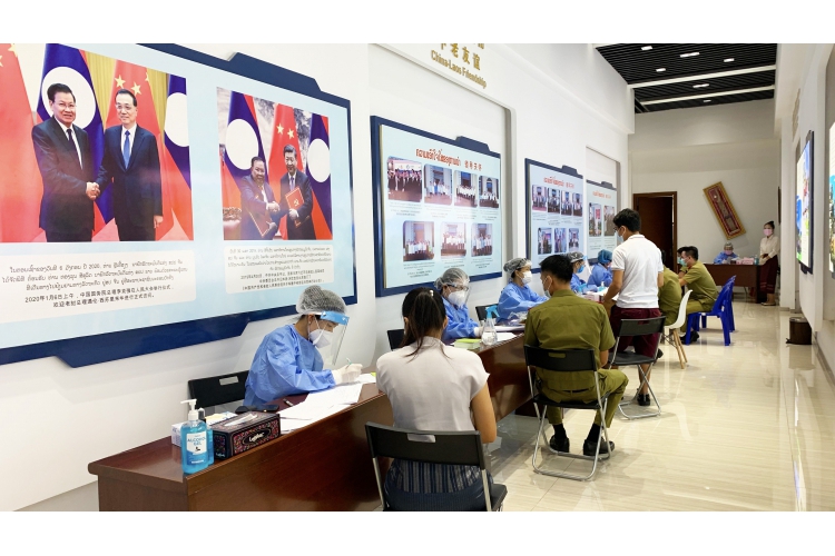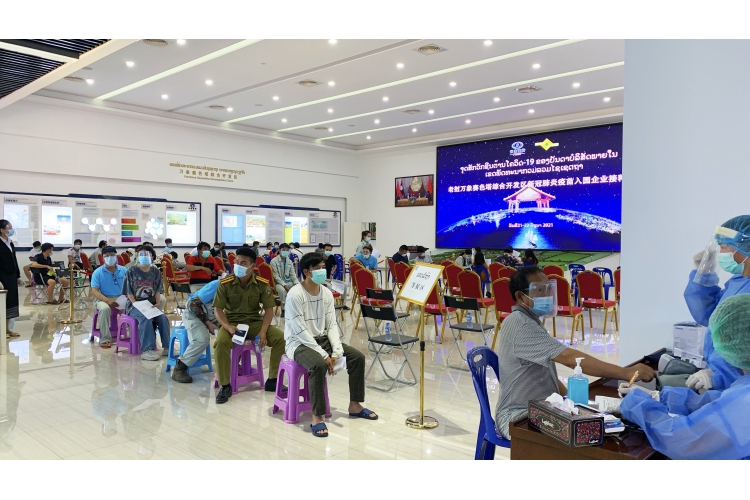 6月21日,為加速建立老撾萬(wàn)象賽色塔綜合開(kāi)發(fā)區(qū)群體免疫屏障,確保開(kāi)發(fā)區(qū)內(nèi)企業(yè)順利生產(chǎn),在老中聯(lián)合投資有限公司和開(kāi)發(fā)區(qū)管委會(huì)的共同協(xié)調(diào)下,老撾國(guó)家疫情防控委員會(huì)特派出20余人的醫(yī)護(hù)團(tuán)隊(duì)到開(kāi)發(fā)區(qū)設(shè)立新冠肺炎疫苗臨時(shí)接種點(diǎn),為開(kāi)發(fā)區(qū)入駐企業(yè)及施工單位員工進(jìn)行為期兩天的新冠疫苗接種。期間,萬(wàn)象市副市長(zhǎng)兼疫情防控委員會(huì)主席普翁·翁坎圣率隊(duì)到疫苗接種現(xiàn)場(chǎng)視察。