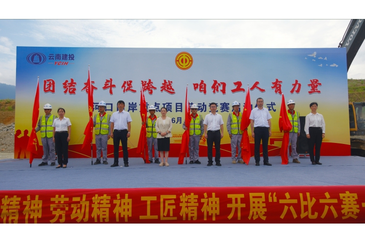 6月21日上午,由紅河州總工會(huì)、自貿(mào)試驗(yàn)區(qū)紅河片區(qū)管委會(huì)(邊合區(qū)管委會(huì))牽頭,云南建投集團(tuán)工會(huì)承辦的河口口岸重點(diǎn)建設(shè)項(xiàng)目示范性勞動(dòng)競賽啟動(dòng)儀式在自貿(mào)試驗(yàn)區(qū)紅河片區(qū)壩灑監(jiān)管區(qū)項(xiàng)目舉行。此次勞動(dòng)競賽以“團(tuán)結(jié)奮斗促跨越,咱們工人有力量”為主題,3個(gè)河口口岸重點(diǎn)建設(shè)項(xiàng)目的人才匯聚于此,共襄專屬勞動(dòng)者的盛舉。紅河州政協(xié)副主席、州總工會(huì)主席張艷梅,自貿(mào)試驗(yàn)區(qū)紅河片區(qū)(河口邊合區(qū))黨工委副書記、管委會(huì)副主任王孝剛,云南建投集團(tuán)工會(huì)常務(wù)副主席周俊,海投公司黨委副書記、副董事長、總經(jīng)理劉愛軍出席啟動(dòng)儀式。