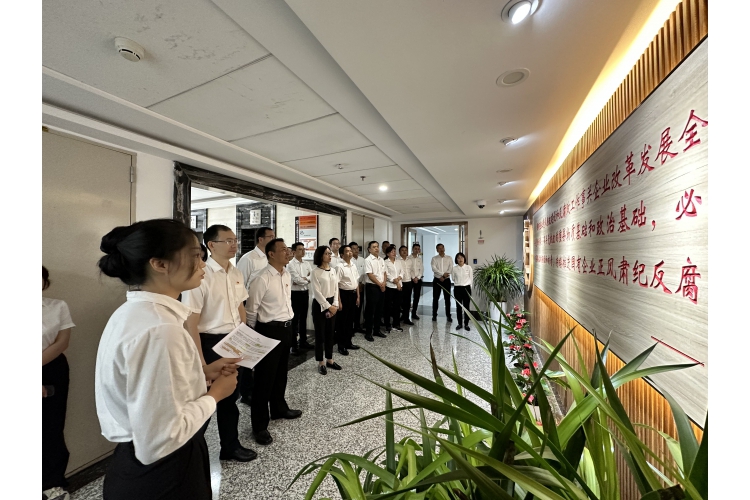 最后,全體共產(chǎn)黨員面對黨旗莊嚴(yán)宣誓,重溫入黨誓詞,重溫初心使命,牢記恪守承諾,敬畏法紀(jì),知法守法。